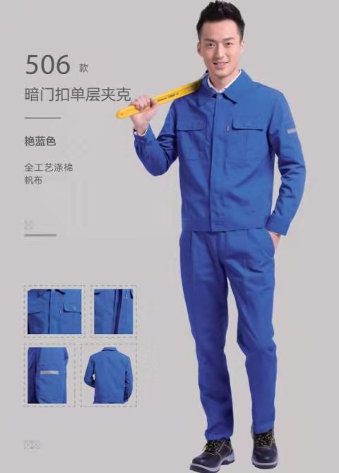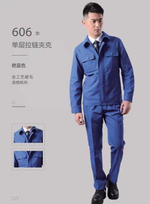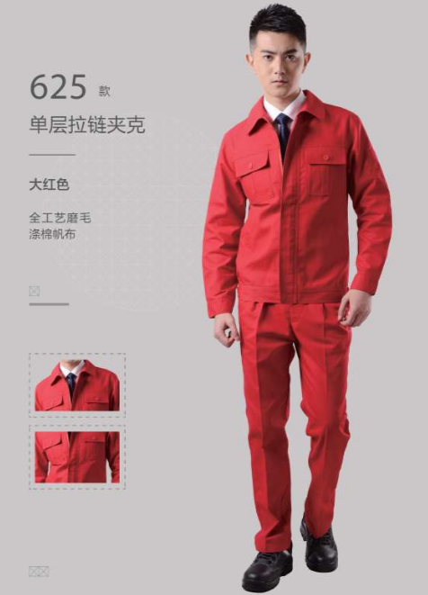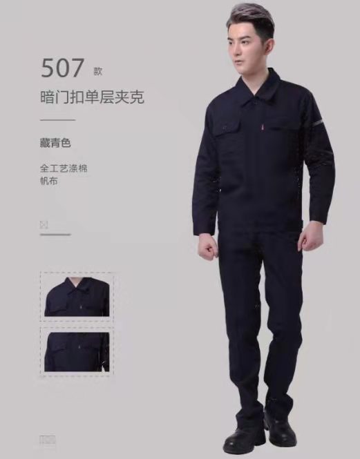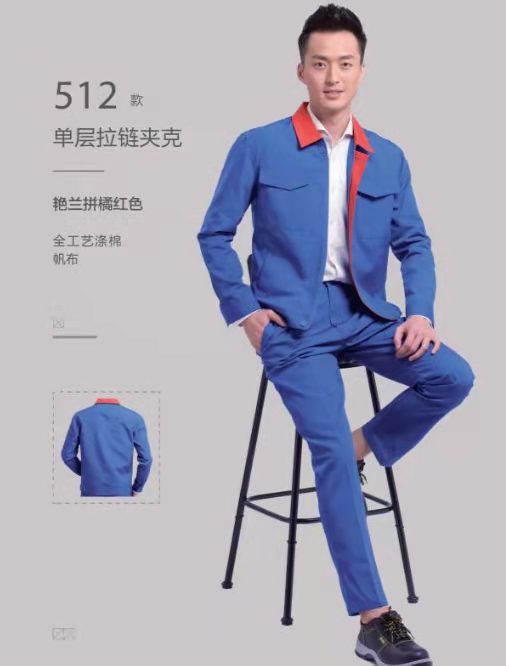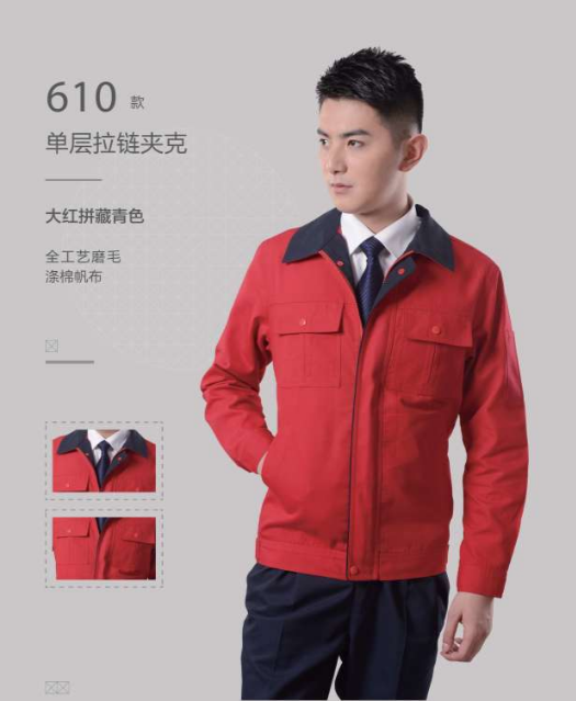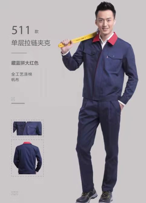 藏蓝拼红领劳保工装